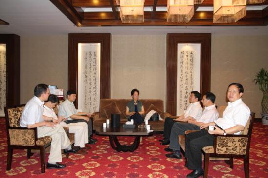 圖為香港中聯(lián)辦副主任郭莉一行在三湘集團(tuán)有限公司董事長(zhǎng)劉勝輝陪同下會(huì)見衡陽(yáng)市委常委、市委秘書長(zhǎng)羅東海(右排左起二)、衡陽(yáng)市政府黨組成員張六生(右排左起三) 南岳區(qū)委書記付丹洲(右排左起一)、衡陽(yáng)市外僑辦主任黃建軍(左排左起一)。
