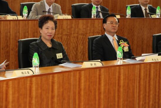 中央人民政府駐香港特區聯絡辦公室副主任郭莉(左)與湖南省政府副省長李友志(右)在三湘香港學院開班儀式上。