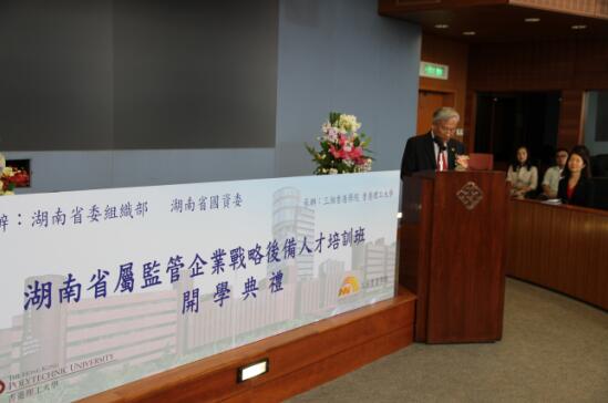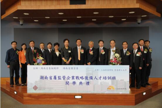10月11日下午,由三湘集團有限公司發起成立的三湘香港學院,在香港理工大學宣布啟動并舉行了省國資委監管企業戰略后備人才香港培訓班開班儀式。中央人民政府駐香港特區聯絡辦公室副主任郭莉、湖南省政府副省長李友志,省委組織部部務委員丁蘭安、省政府副秘書長黃衛東、香港理工大學常務及學務副校長陳正豪教授、省國資委主任吳志雄、香港理工大學副校長阮曾媛琪教授、中聯辦經濟部副部長孫湘一、省政府港澳事務辦公室主任肖祥清、省教育廳廳長王柯敏、省文化廳廳長周用全、省國資委副主任盧光祖、三湘集團有限公司董事長兼總經理劉勝輝等作為主禮嘉賓出席了開班儀式。