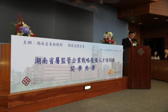 省國資委主任吳志雄在講話中指出,三湘學院與香港理工大學聯合建立湖南省企業領導培訓基地,對于推動泛珠三角區域合作,促進兩岸三地共同發展,特別是對于我們加強企業領軍人才隊伍建設,促進湖南省屬國有企業加強與世界一流企業和國際市場的銜接與聯系、學習與交流、合作與競爭,都將發揮十分重要的積極作用,也具有十分重要的戰略意義。他希望各位學員能珍惜機會,提升自我;認真學習,開拓視野;相互學習,共同提高。