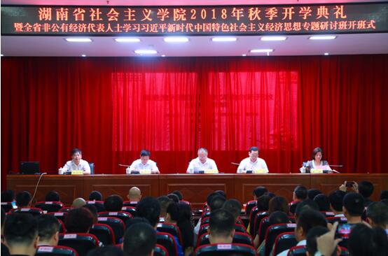 9月6日上午,2018年秋季開學(xué)典禮暨全省非公有經(jīng)濟代表人士學(xué)習(xí)習(xí)近平新時代中國特色社會主義經(jīng)濟思想專題研討班在湖南省社會主義學(xué)院開班,省委統(tǒng)戰(zhàn)部副部長、省社會主義學(xué)院黨組書記鄧煥生,省委統(tǒng)戰(zhàn)部副部長、省工商聯(lián)黨組書記陳瀟,省社會主義學(xué)院副院長周述杰、彭英、黃自榮出席開班儀式。