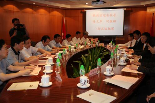 省領(lǐng)導(dǎo)許又聲、何報翔聽取三湘集團有限公司工作匯報。