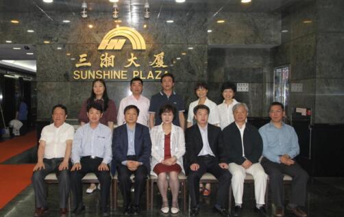 湖南省副省長黃蘭香(前排中)率省政府副秘書長陳仲伯(前排左二),省經信委主任謝超英(前排右二),省國資委副主任張美誠(前排左一),省華菱集團董事長曹慧泉(前排右一)等視察三湘集團,與中聯辦經濟部部長孫湘一(前排右三),三湘集團有限公司董事長、總裁劉勝輝合影留念