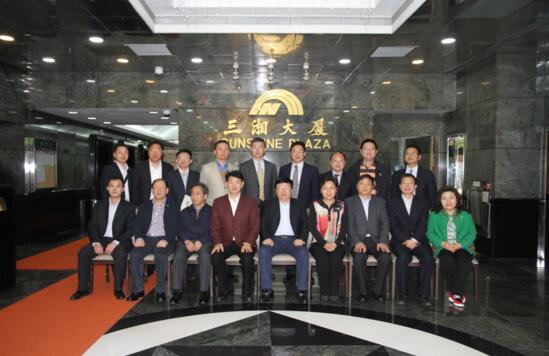 圖為省委常委、省政府常務副省長陳向群(一排中)與三湘集團員工親切合影